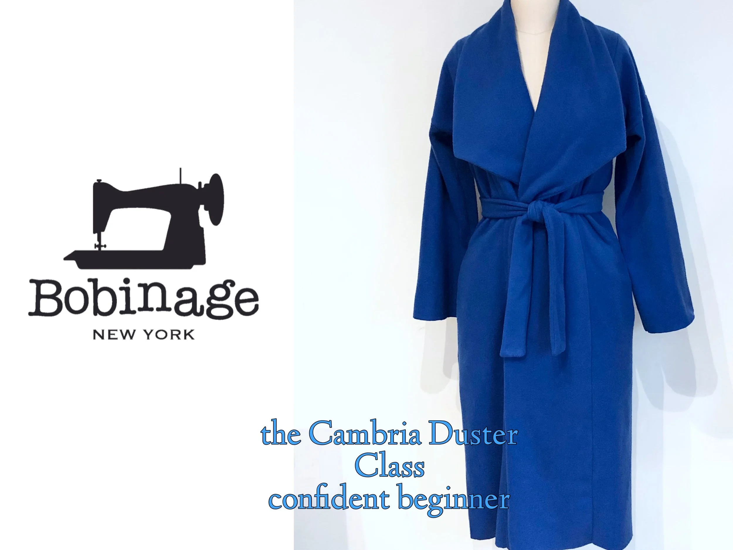 The Cambria Duster is a versatile fall piece. This staple has a dramatic, wide-draped shawl-style collar. It is a shin-length, unlined duster that is perfect for layering—the duster ties in the back for a clean, shapely look or the front for more coverage. Learn how to complete a detailed pattern layout, pattern marking, intermediate construction, and best practices for sewing and ironing polar fleece. Skill Level - Confident Intermediate, Price - $200 / fabric and supplies sold separately